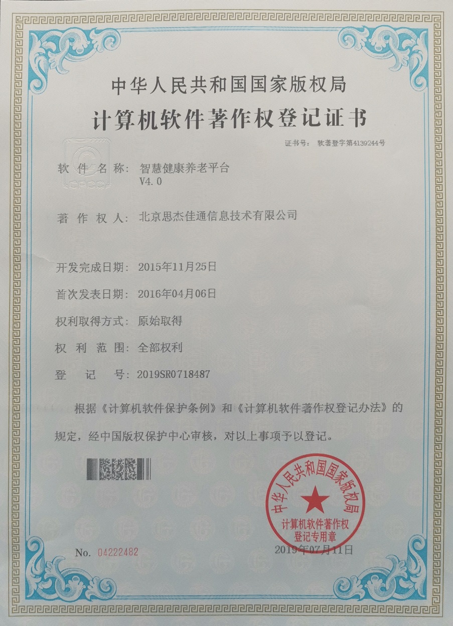 七、具有幾十項核心的養(yǎng)老平臺計算機軟件知識產(chǎn)權(quán)證書